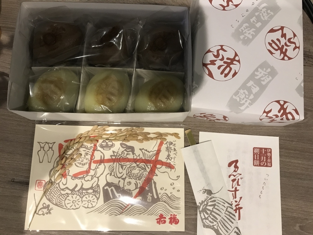 11月1日の朔日餅は「ゑびす餅」。商いの神ゑびす様にちなんでいるとのこと。餅も生地も黒糖のお餅と黄金の小判のような柚子風味の餅があって、どちらも美味。
