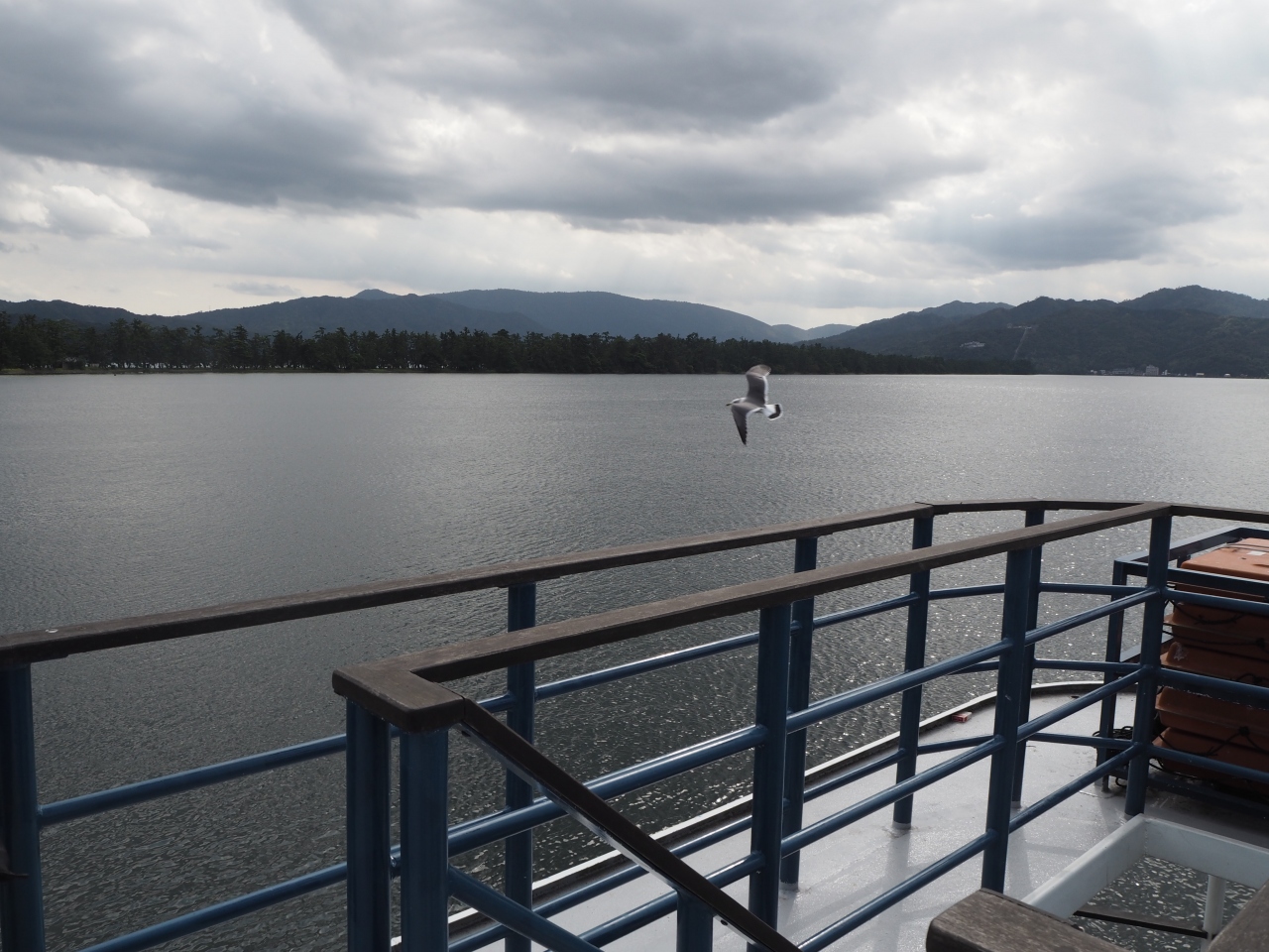 天橋立遊覧船は天橋立の砂州の両端にある天橋立桟橋から一の宮桟橋を結んでいます。阿蘇海の内海を走行するので、波はないので乗り心地はいいです。30分毎ほどの間隔で運行しており、乗船時間は10分ほどです。船のデッキからは天野橋立の砂州の全体像が近くで見られるのはいいです。