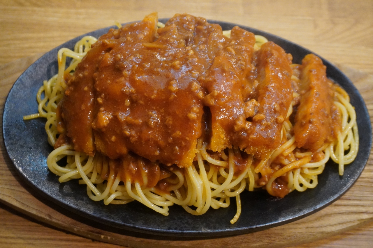 さて、スパかつの方ですが、ソースは上品な薄味で、それはまあよかったのですが、鉄板で焼いたパスタは当然パリパリ。それがかつと合っているかというとどうなんでしょうねえ。量が多くて、半分くらい食べたところで飽きてくる。なんだかなあというのが印象です。