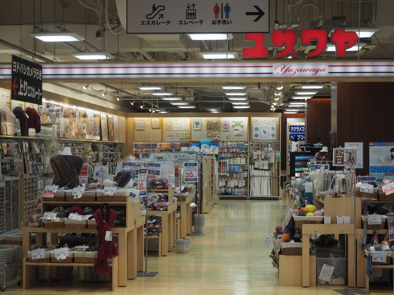 京都駅前の京都ヨドバシの地下2階にユザワヤはあります。ユザワヤは手工芸の店で、自分での手造り用の布製品などが売られています。マスクを自作しようと布地を探しましたが、いろいろの柄、デザインや布地のもありました。さすがに出来上がったマスクは売られていませんでした。