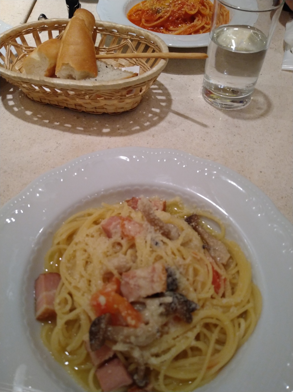 パスタランチです。百貨店の6階なので、落ち着いていますが、期待しすぎたカナ。パスタも種類が選べますが、どれもトマトベースだったり、食べ放題パンも、冷たかったりパサパサだったり。でも、お値段も安いので、期待しすぎなければ普通に美味しいかと!