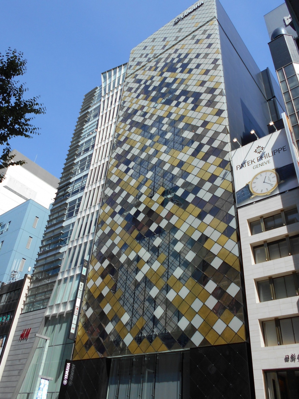 銀座のメインストリート沿いに佇むひときわ目を引くゴールドのガラスの外観のビル「ヤマハ銀座ビル」の7階から9階にかけて入っているコンサートホールです。