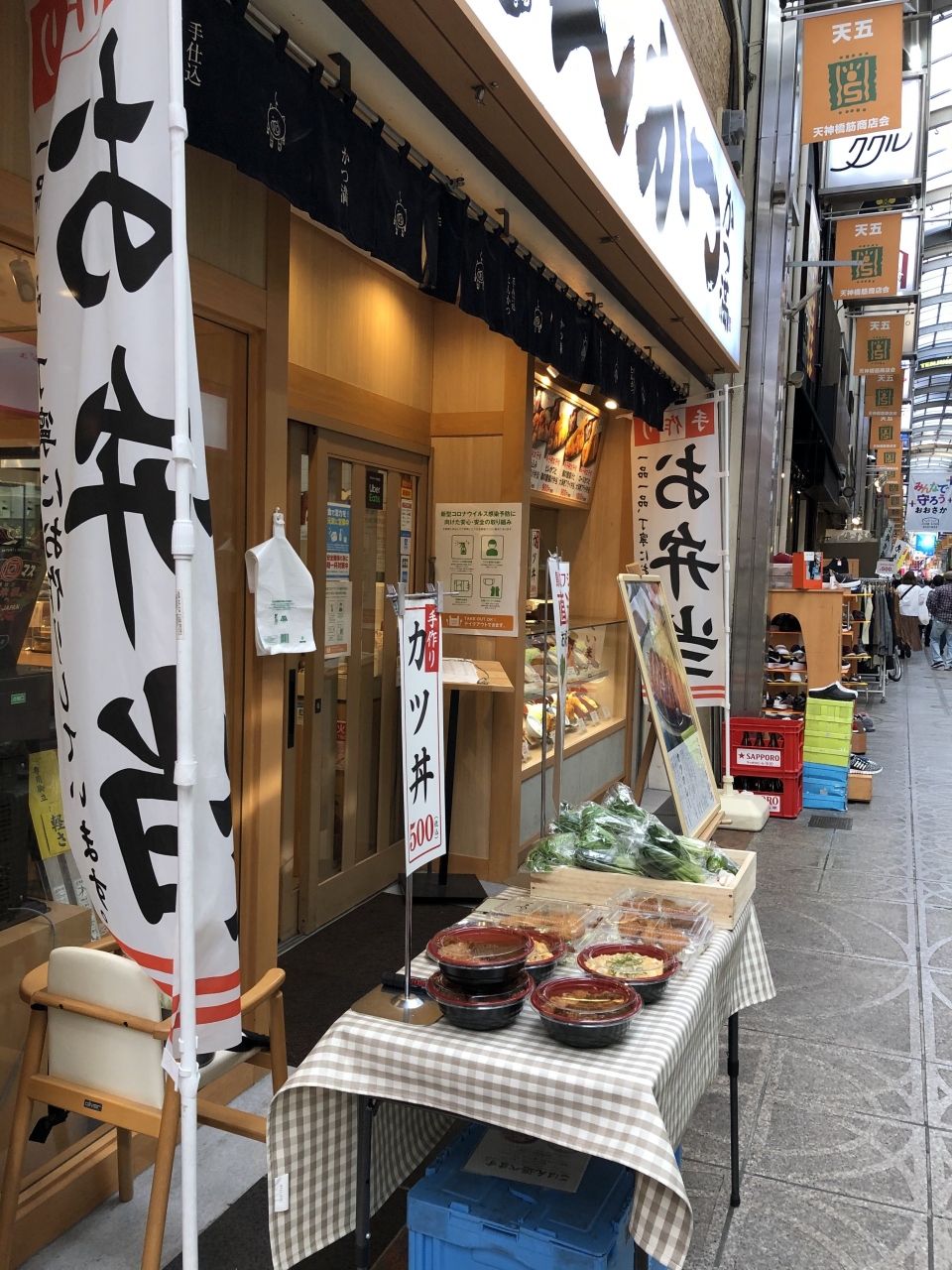天神橋筋商店街をうろうろしていて、時節柄やはりテイクアウトを強化しているようで、店先にワンコインのテイクアウト商品が置いてあるのを見つけて、かつカレーと卵とじのかつ重を購入しました。味は普通というか、500円なのでこんなものでしょう。店員さんは感じよかったです。今度は店内で出来立てを食べたいですね。