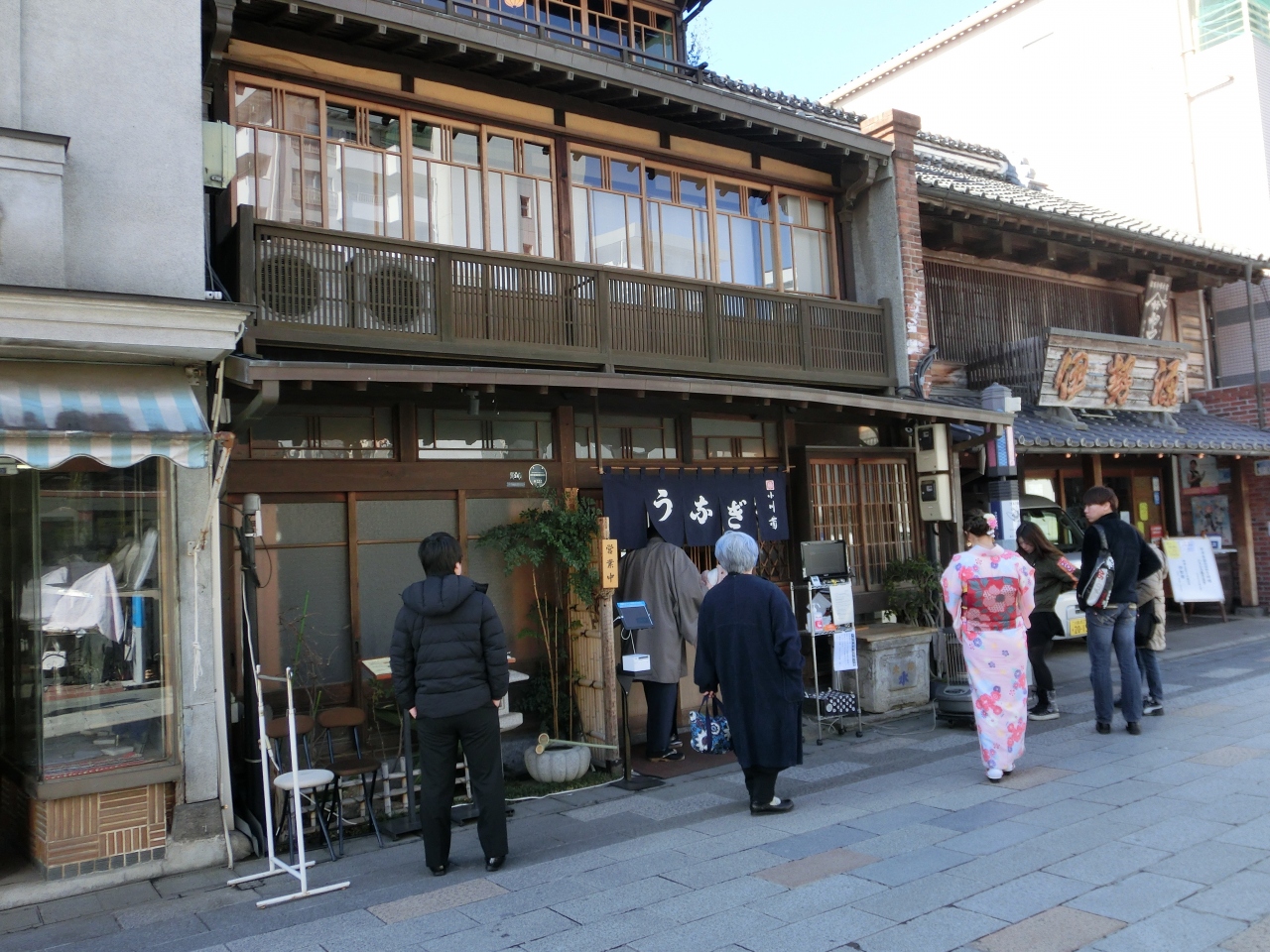 川越大正浪漫通りにある、うなぎ店で川越うなぎを代表する名店。大正浪漫通りを象徴するようなしもた屋の店もしぶい。かなりの人気店なので土日に入るのは難しいが、値段もリーズナブルで、雰囲気とともに味わえる。