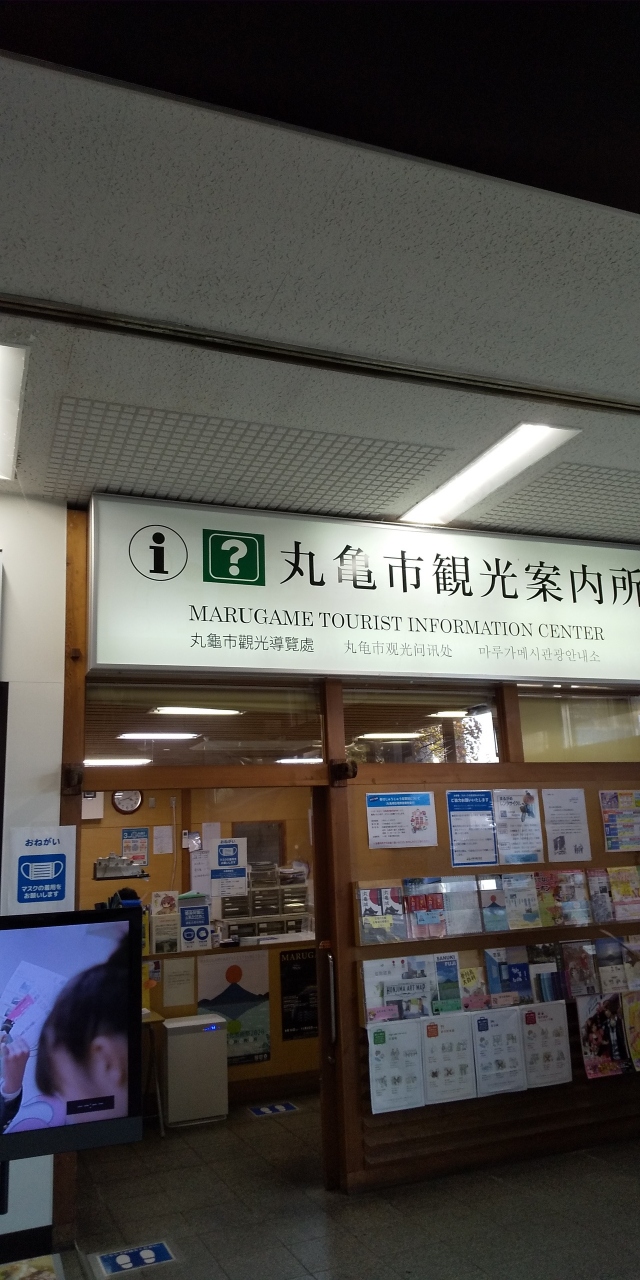 JR丸亀駅の構内にあり改札口の前に丸亀市の観光案内所があります。日中は案内人のかたがいて説明をしてくれます。パンフレットもたくさんあり、さらに丸亀市の飲食店や観光地で使えるクーポンも手に入りますので最初に駅を降りたら気さくに訪ねるとよいと思います。おすすめのうどん店や料理屋も教えてもらえます。