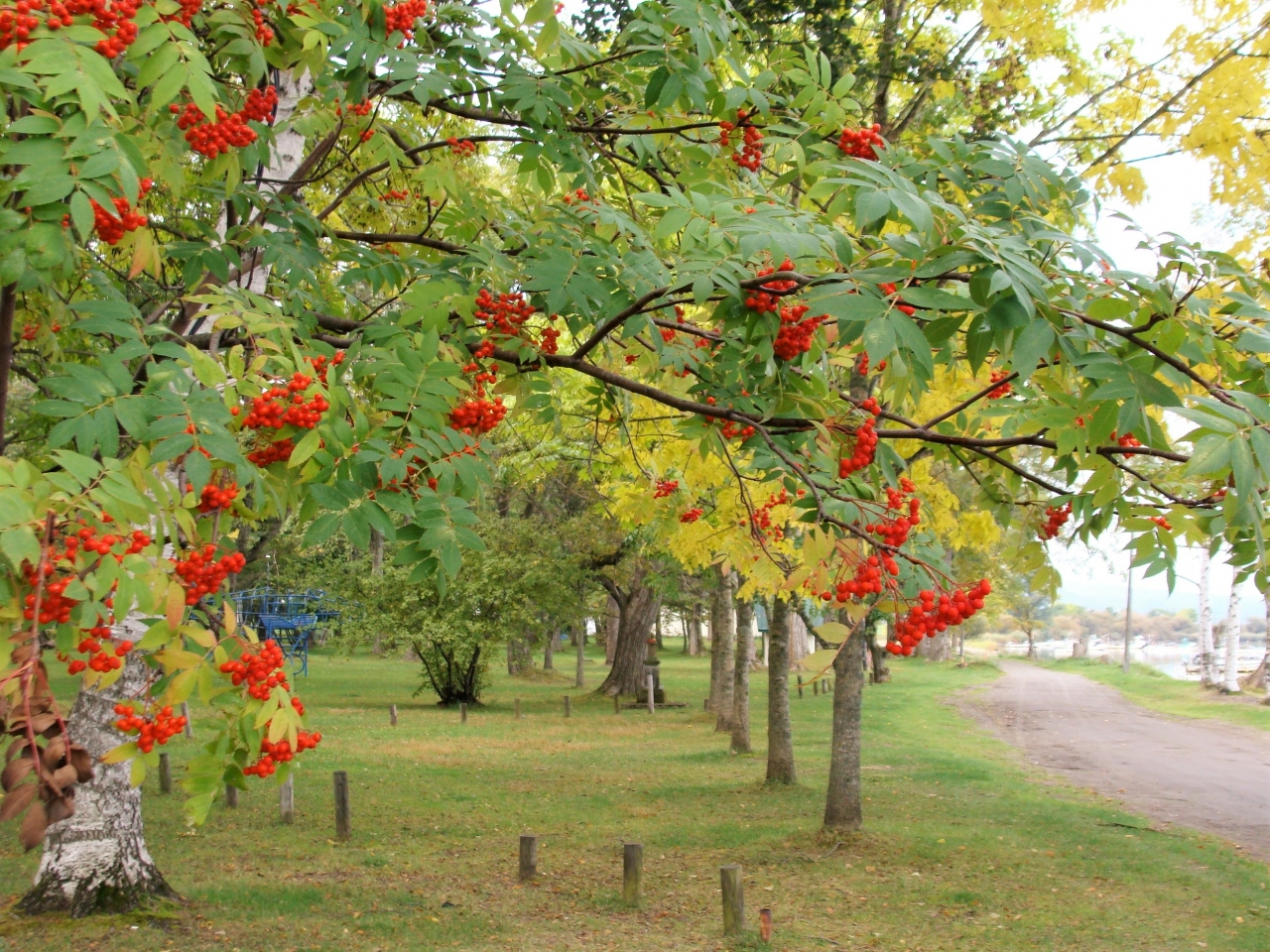 湖畔沿いには柏や白樺にナナカマドといった道内を代表する多くの木々が植樹され、手入れされた芝生もふかふか状態でした。