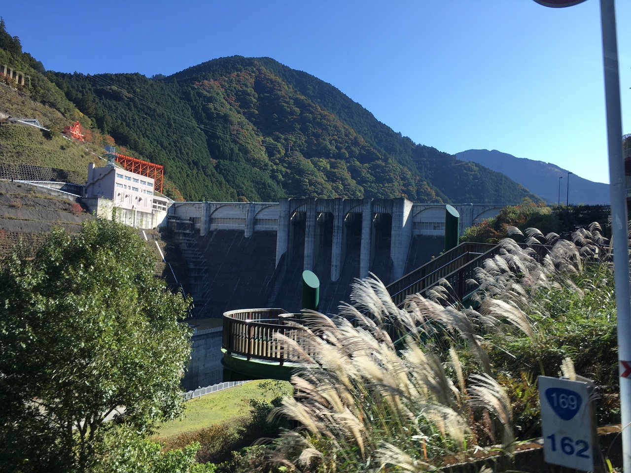 さて、バスの話。約2時間の道のりですが、道中のダムやダム湖、そして、山の紅葉、素晴らしい景観でした。個人的には、行きは進行方向左側の席がオススメです。