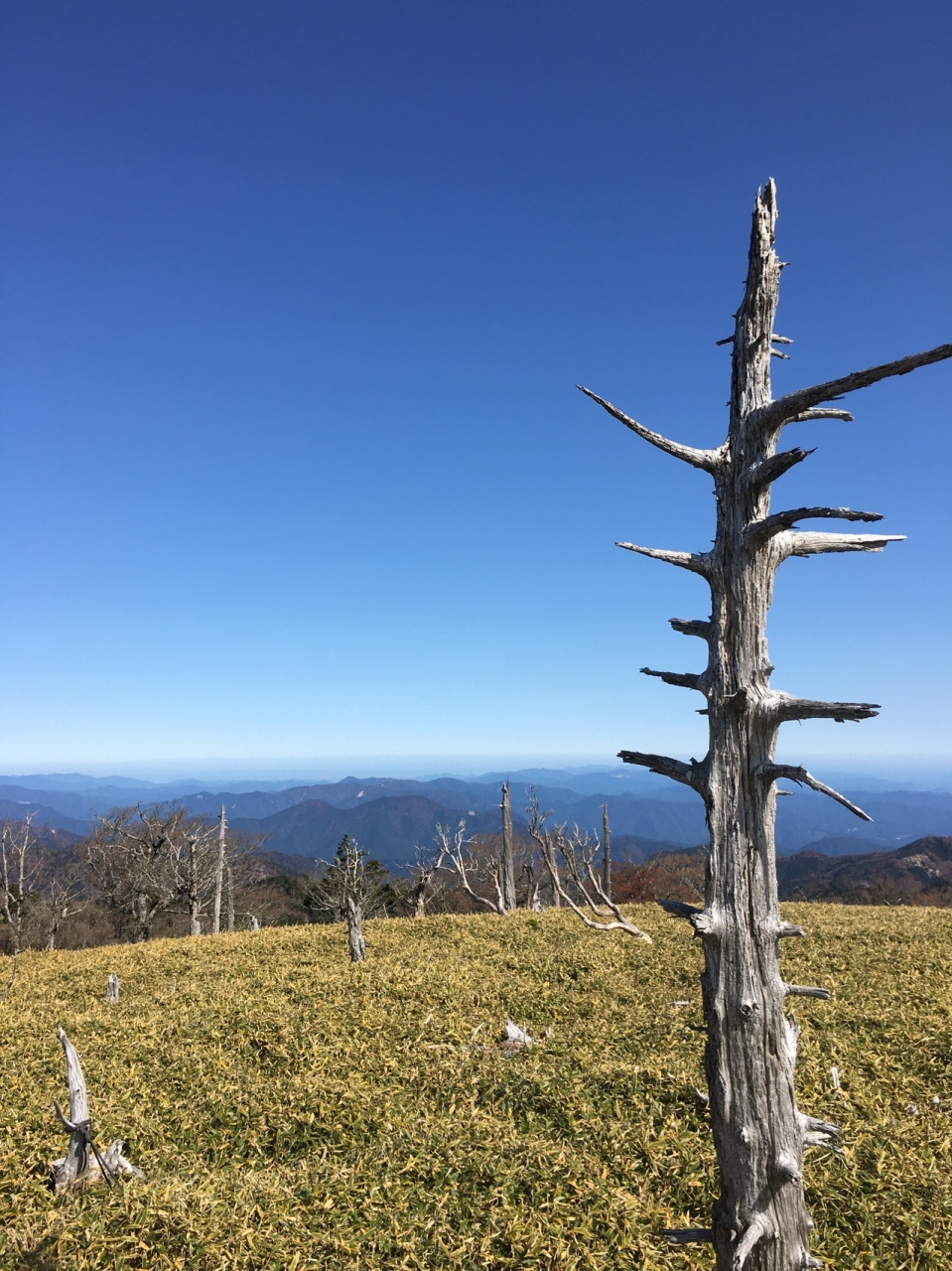 絶景!白木の立ち枯れと標高1695mの山頂からの360°の眺望