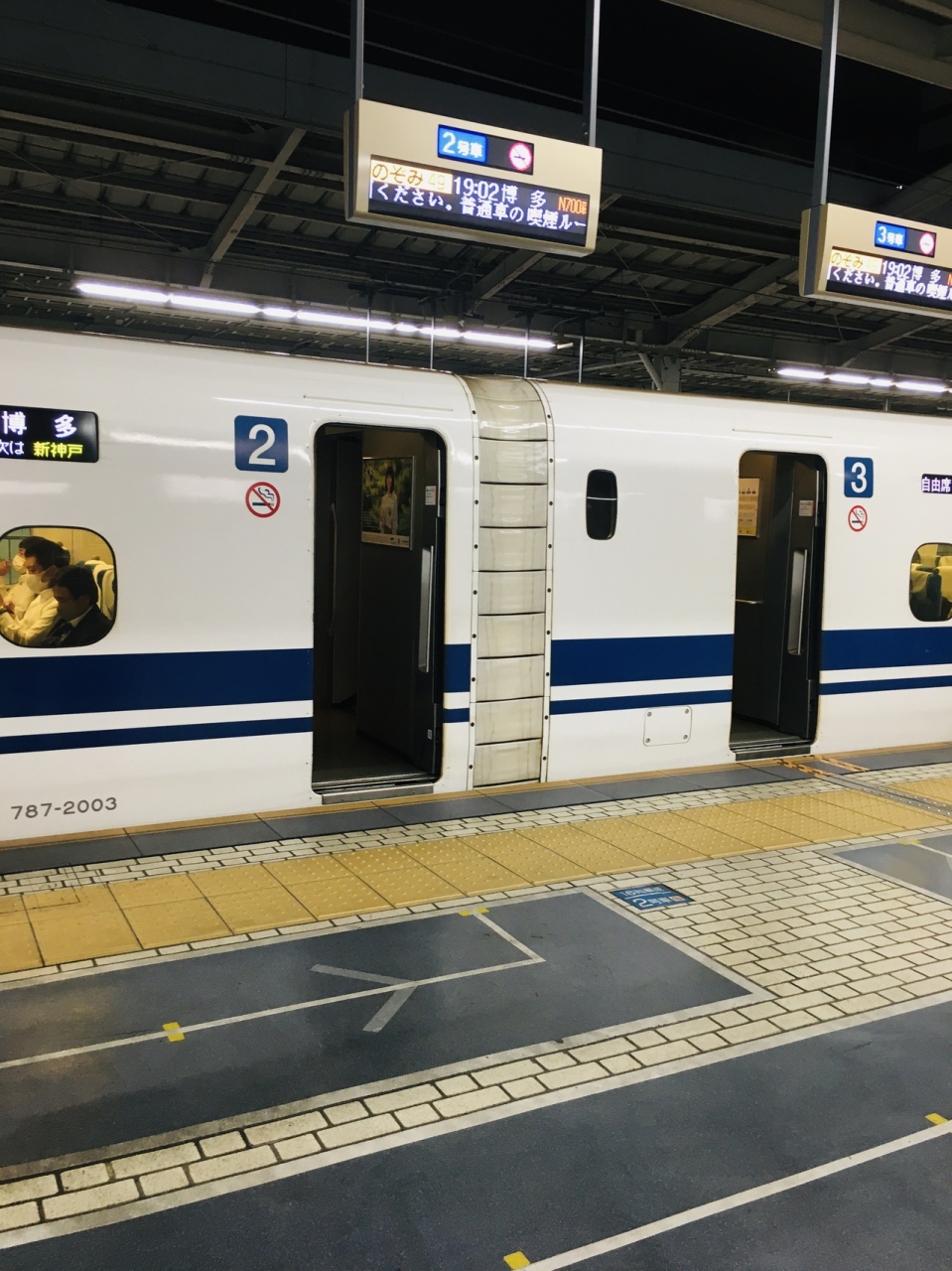 先頭と後方の滑らかな外観がカッコ良くカモメの嘴のような感じでした。出発時、停車時滑らかに発着するのも良いです。新大阪駅から利用しましたが、数十分待っているだけでも新幹線の発着が多いです。車内販売もありますが駅のホームでも弁当等購入出来ます。