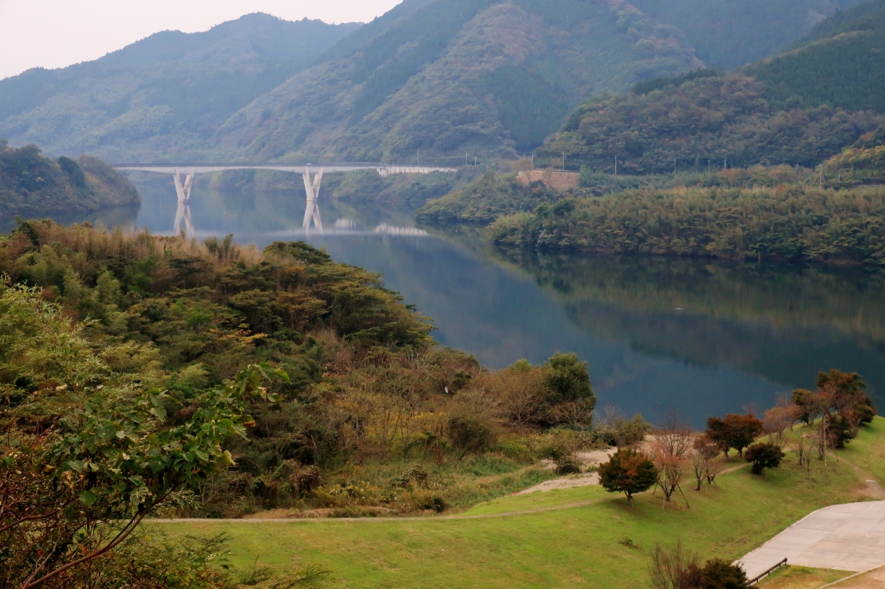 吉井川の上流に建設された苫田ダムのダム湖だ。当時の自治体名が「奥津町」だったことにちなんで奥津湖と命名された。沿岸にある観光案内所「みずの郷奥津湖」から観賞すると、しばし見入ってしまう。この施設には奥津湖の広報展示館があるほか、カヌー体験などの受付をしている。人造湖ではあるが、鏡野を代表する観光資源だ。