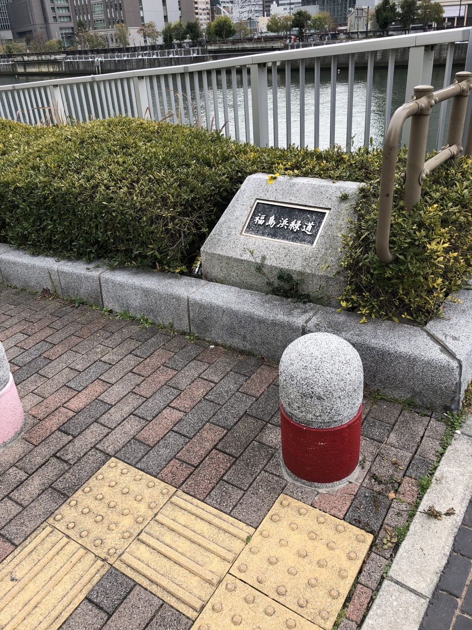 中之島の北側、堂島川沿いの遊歩道で、住所的には福島なので福島浜緑道ともいうようですね。川と近代的なビルが立ち並ぶ風景がなかなかおしゃれです。淀屋橋あたりと比べると人も少ないので、マイペースで散歩を楽しめました。
