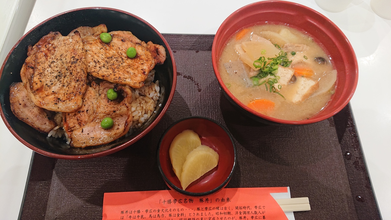 北広島の三井アウトレットパークのフードコートにある、帯広で1934年創業したはげ天グループの豚丼専門店。ぶたはげの豚丼の特徴は、特選の道産豚を850℃の高温で、一枚一枚、丁寧に網焼きすることですが、こちらもお店の横で、オーダー後に調理開始。こちらには、豚肉が通常よりも一枚少ない3枚ではあるものの、豚汁のつく「豚汁セット」があり、ボリュームもあって結構お得。豚肉は柔らかく、特製のタレと絶妙に絡んでいて美味。もちろん、ご飯が進みます。豚汁も、たくさん豚肉も入っており、美味。帯広でしか食べられないと思っていた味が、札幌(正確には北広島)で食べられる幸せ。安定した美味しさです。