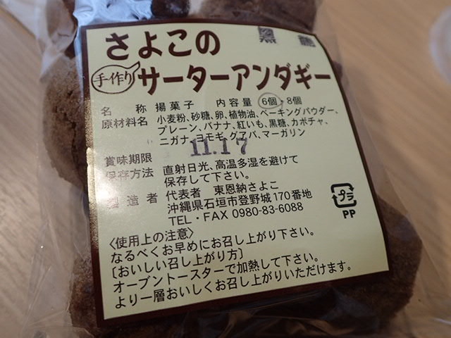 甘すぎず、ちょうどいい感じのサーターアンダギーでした。油っぽさも全く感じず、美味しかったです。行ったのが、午後になってしまって、黒糖しか残っていなかったのが残念でした。バナナなど他の種類も食べてみたかったなぁ。