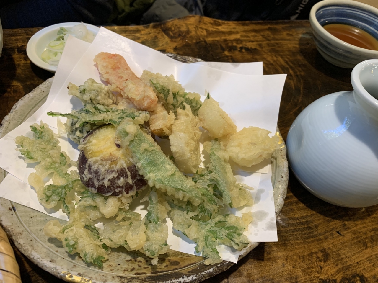 お野菜の天ぷらも頼んで旬のお野菜を天ぷらにしてありました。中でも一番美味しかったのはさつまいもです。聞いたところシルクスイートみたいでした。 中がほくほくで甘くて主人はとても感激しておりました。