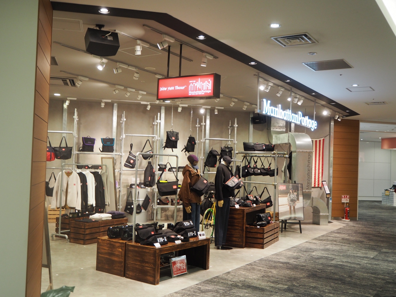 京都駅の八条口から歩いて数分の場所にあるイオンモールの2階にバッグのマンハッタンはあります。旅行や日常使いのカジュアルのバッグが多く並べられています。値段も比較的リーズナブルなのもが多く、布製の製品も多くあります。マンハッタンというロゴが少しおしゃれぽいです。