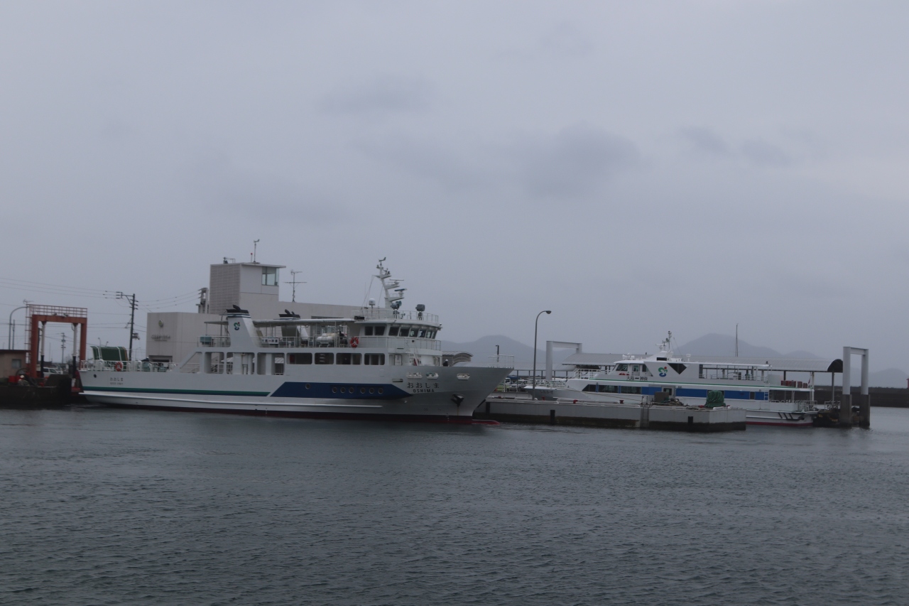 宗像市の運航する渡船で神湊と大島を結びます。生活航路であり、世界遺産への観光航路でもあります。高速船が「しおかぜ」、フェリーが「おおしま」で交互に運航しています。「しおかぜ」は15分、「おおしま」は25分です。運賃は一緒でした。