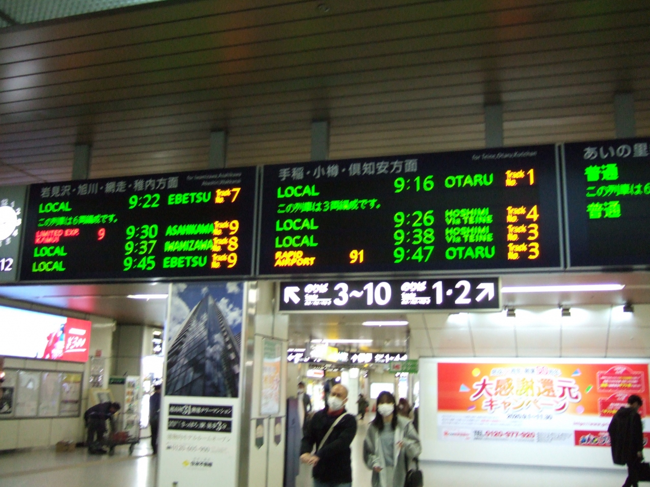 札幌駅から小樽方面と旭川方面に列車が出ていますが、小樽方面が上りで、旭川方面が下りになっています。どちらも途中の手稲や江別まではそれなりに本数が多く、小樽まではまだ便利なものの、岩見沢行きは30分以上間隔が空き、意外と不便です。
