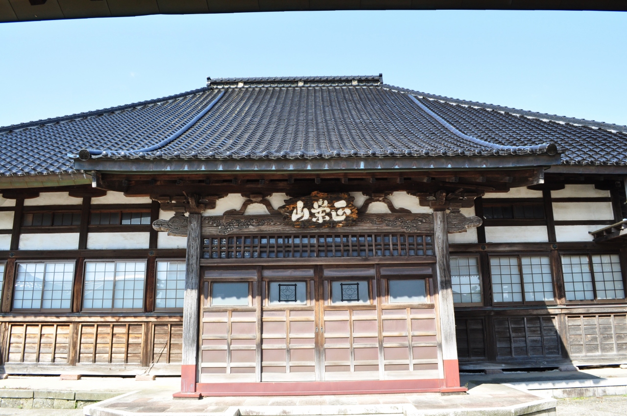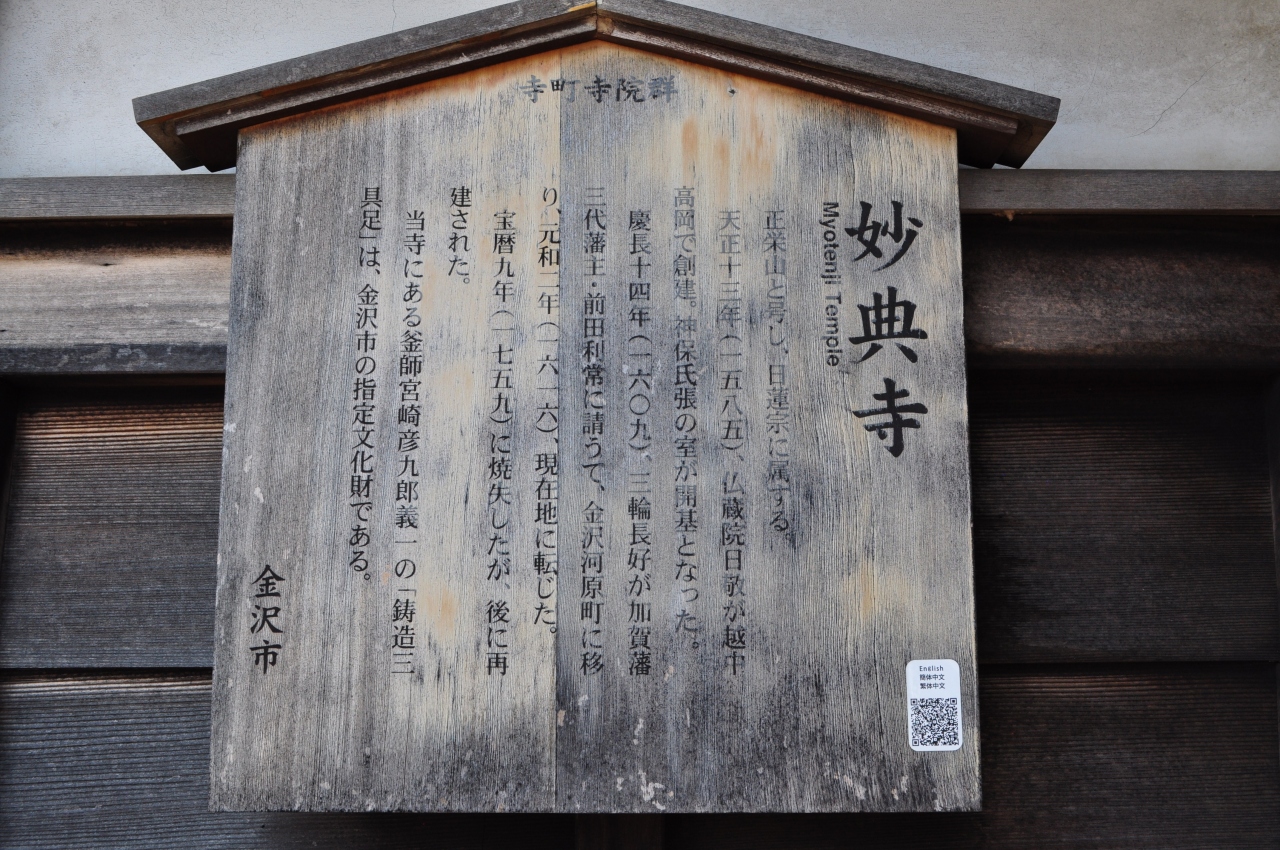 2020年6月後半に金沢を旅行した際に立ち寄りました。野町広小路交差点から徒歩7~8分程、寺町寺院群の寺町通り沿いにある日蓮宗の寺院になります。今から450年ほど昔の天正13年(1585年)に創建されています。まるで奉行所のような堂々とした山門と壁が出迎えてくれます。外からでもはっきりと見える鐘楼も大変立派でした。境内に入ると大きな本堂があり、全体的にとても迫力がある寺院で見ごたえがありました。
