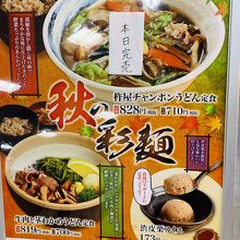 今 〈秋の彩麺〉 フェア やってますが、この日は 「杵屋チャンポンうどん定食」 本日完売でした。