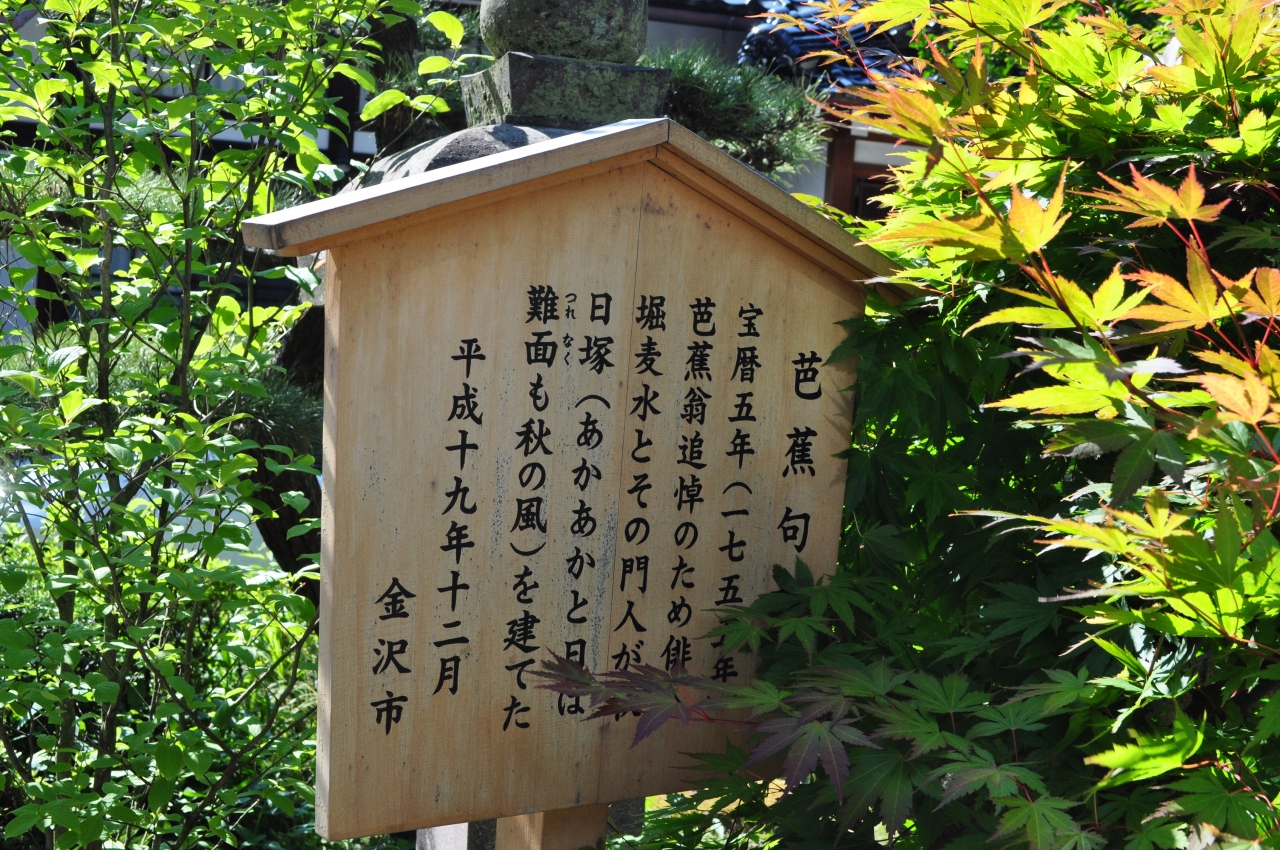 2020年6月後半に金沢を旅行した際に立ち寄りました。野町広小路交差点から徒歩数分、蛤坂交差点のすぐそばにある浄土宗の寺院「成学寺」の境内にあります。山門をくぐってすぐ目の前にあるので分かり易かったです。この句碑は宝暦5年(1755年)に建立されたものだそうで、260年以上の歴史があるということですから驚きです。松尾芭蕉が亡くなった後、追悼の意味を込めて建てられたもののようです。松尾芭蕉は金沢を訪れており、その際に多くの門人を獲得いていたようですね。兼六園にも同様の石碑があるので、併せて見学されるとより面白いかと思います。