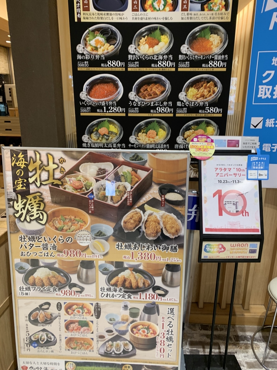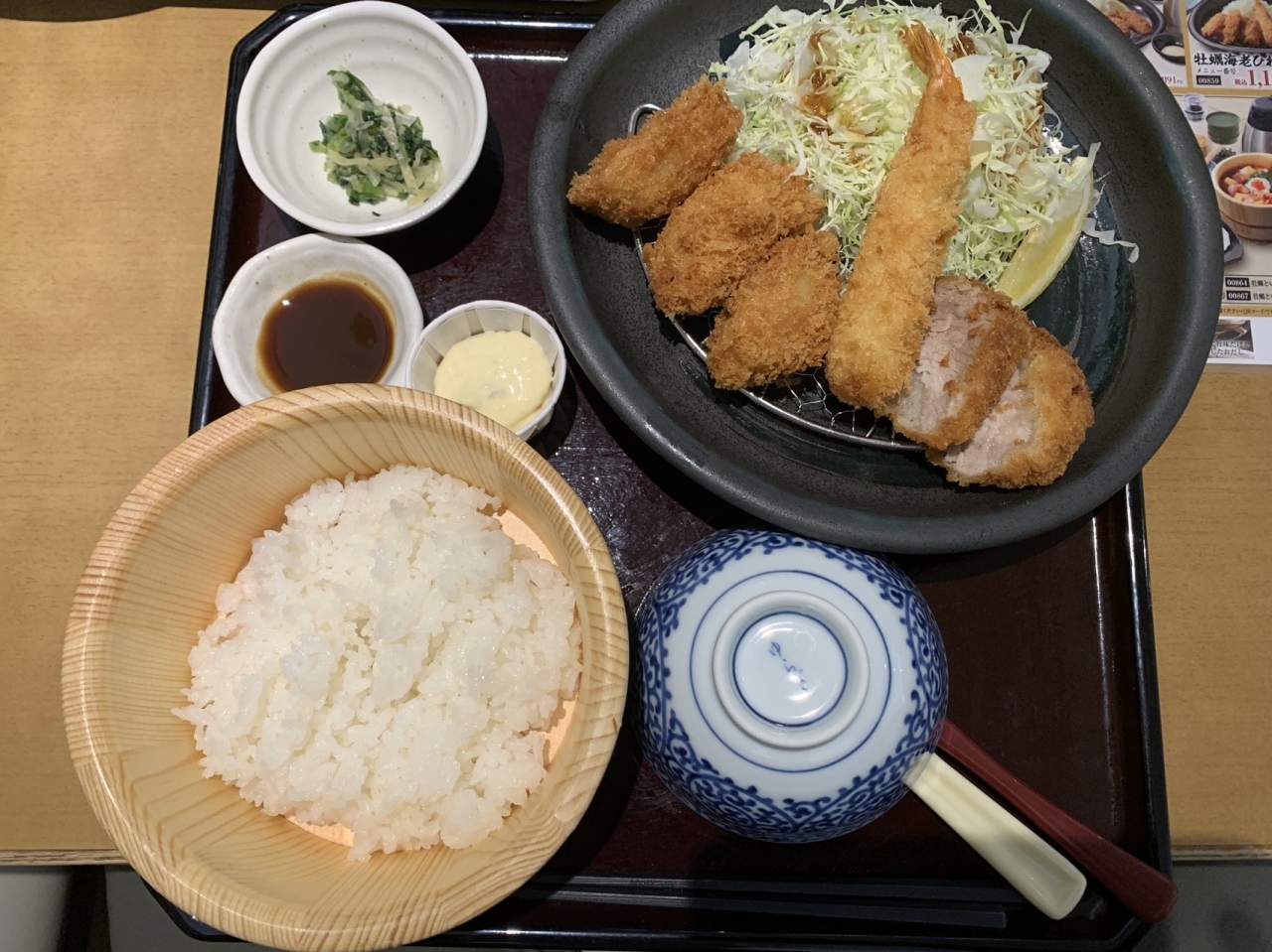 牡蠣の味わい御前、牡蠣といくらのバター醤油おひつご飯、などありましたが、牡蠣海老ひれかつ定食を頼みました。