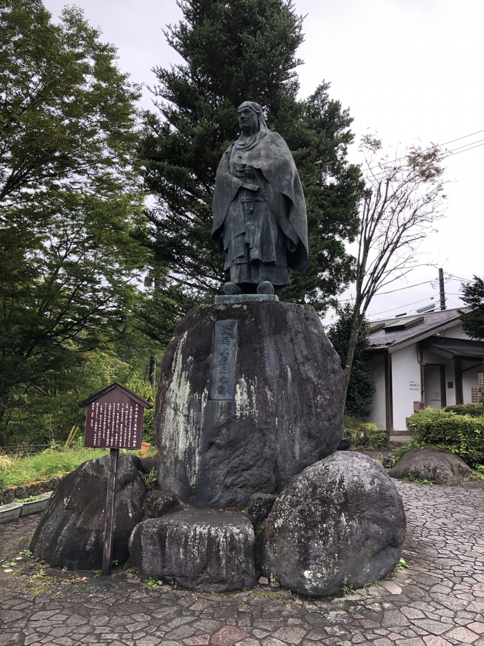 JR日光駅から日光東照宮方面へ行くバスに乗り、神橋で降りるとすぐ右手にありました。天台宗のお坊さんで、荒廃していた日光を再興させ、日光東照宮の創建に尽力した方だそうです。108歳で大往生したとのことで、東寺としては大変な長生きだったようで驚きました。凛々しい表情で東照宮の方を向いてました。