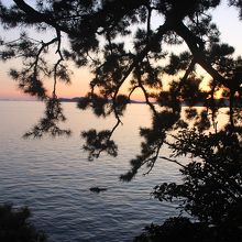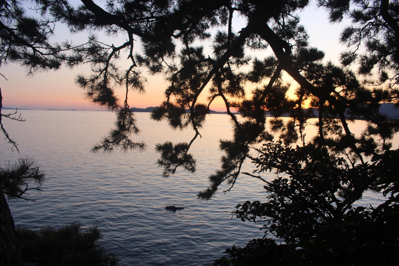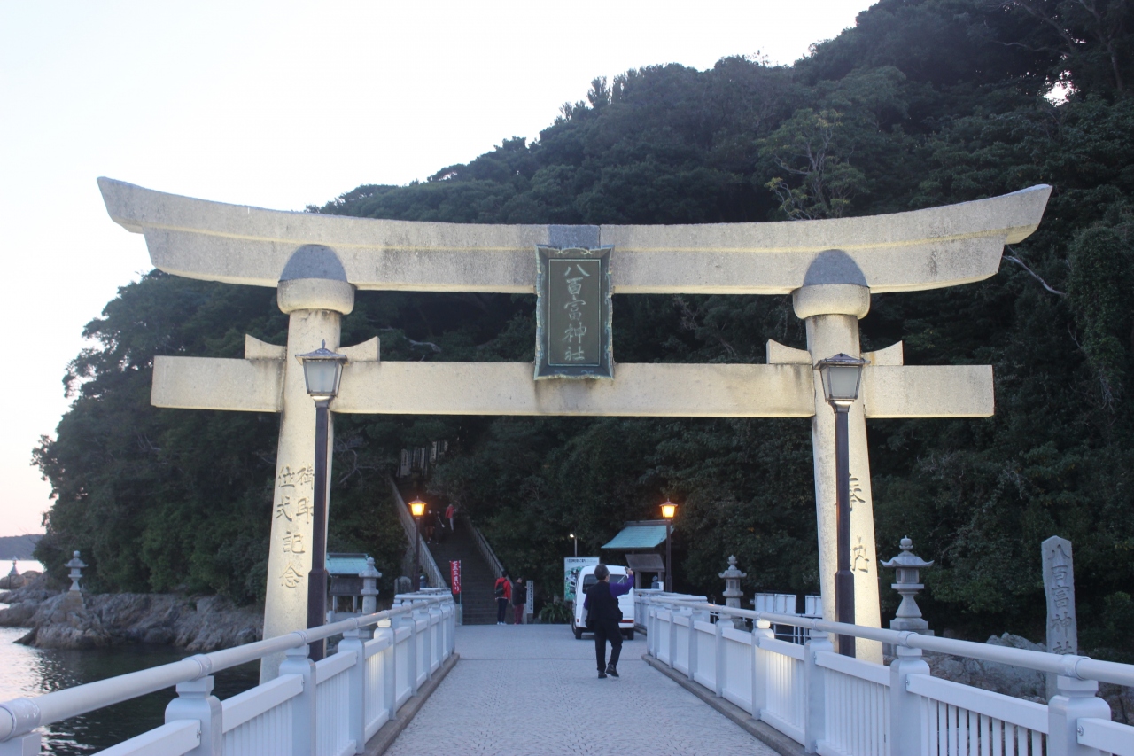 神社から遊歩道をまわって海沿いに橋の入口まで一周しました