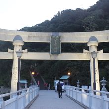 竹島に渡る橋を渡ると鳥居があり、この神社の入り口となります。