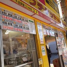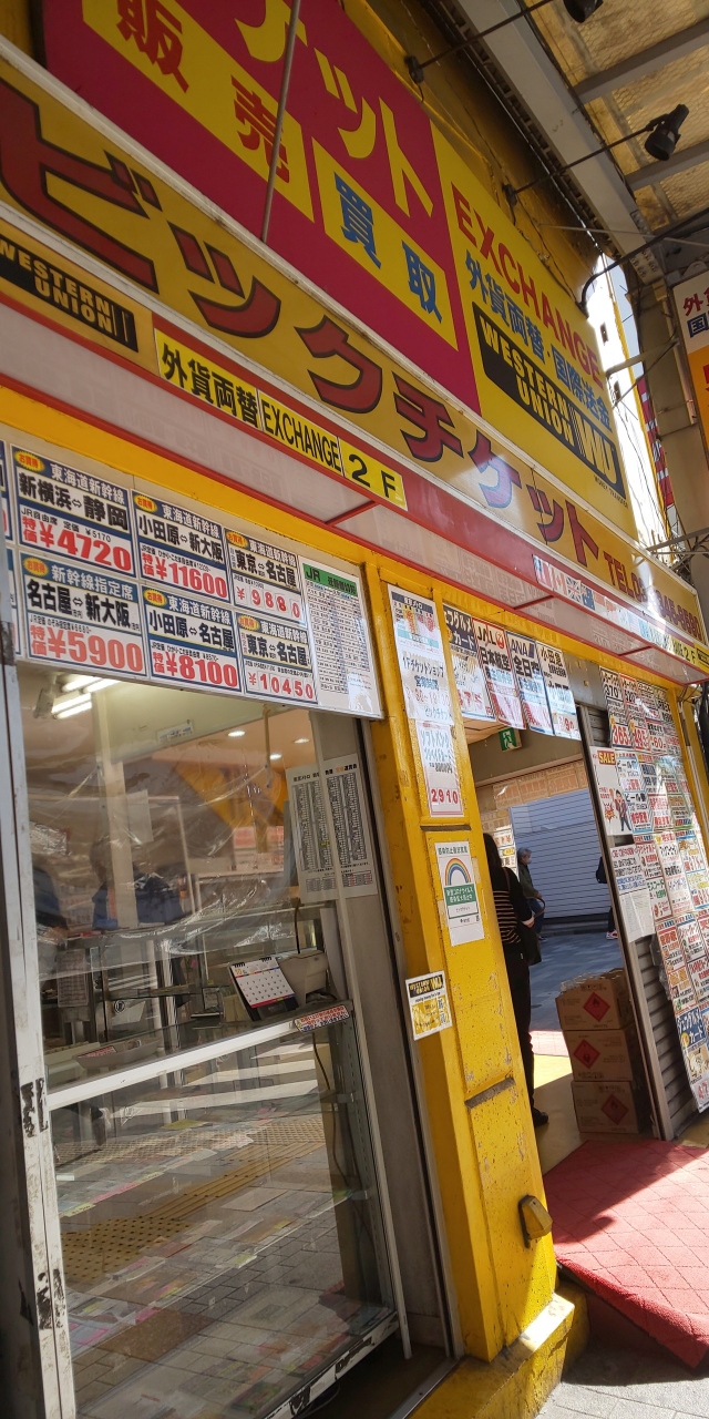 チケットショップの並ぶ西新宿の思い出横丁にあります。黄色の看板が目立ちます。角地にあるので2方向からの通りに面してるので目に止まりやすいです。