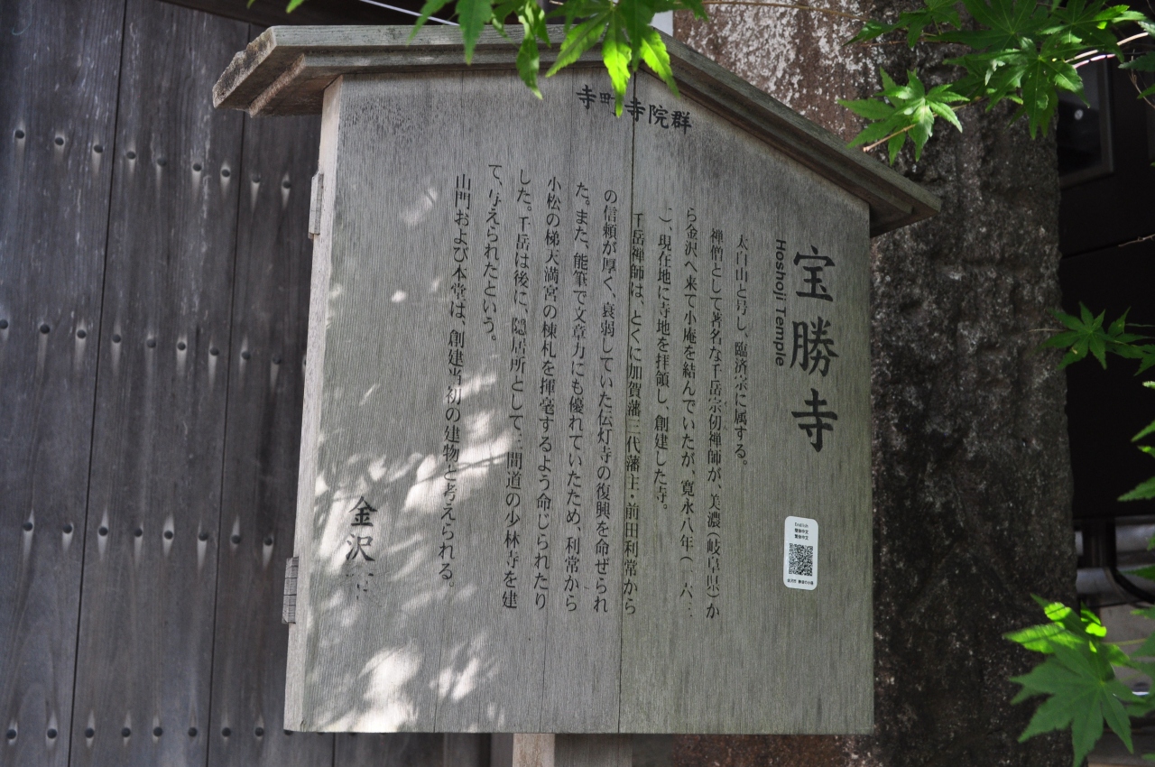 2020年6月後半に金沢を旅行した際に立ち寄りました。にし茶屋街からも近い蛤坂交差点から徒歩すぐの臨済宗の寺院になります。今から390年ほど昔の、寛永8年(1631)に創建された寺院になります。こちらの寺院には「寺カフェ」と呼ばれるカフェも営業しているようですが、残念ながら訪問した日はカフェの営業はやっておりませんでした。山門及び本堂は創建当時のものが残っているとのことで、大変貴重な歴史的建造物との事ですので、是非ともじっくりと見学していただきたい寺院です。