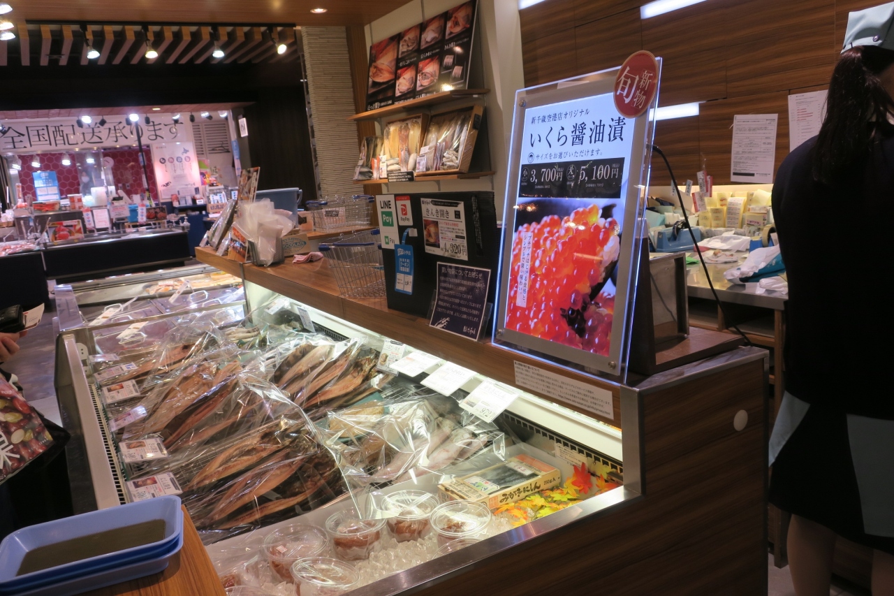 場外市場の店員から、帰りに買うなら空港内のお店がよいと聞いたので、到着し、すぐにお店に。品数も豊富で、目移りしました。新鮮な魚、乾きものなどなど沢山あり、結構重くなってしまいました。丁寧な包装で、冷凍、冷蔵と分別してくれ、帰るまで安心でした。素晴らしい店員さんでした。
