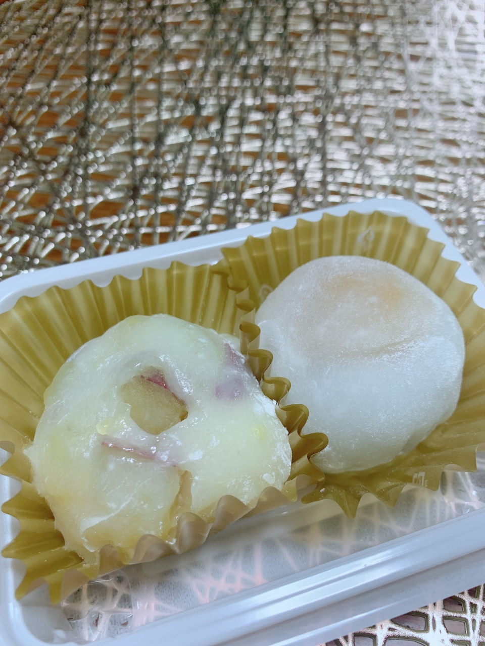 ここのフルーツ大福はめちゃくちゃ有名です。おおきなフルーツがごろっとはいっています。今日は栗と芋の入った大福を購入しました。芋がごろごろはいっていてめちゃ好み。栗は粒あんだったのでそちらは食べずに見てました