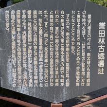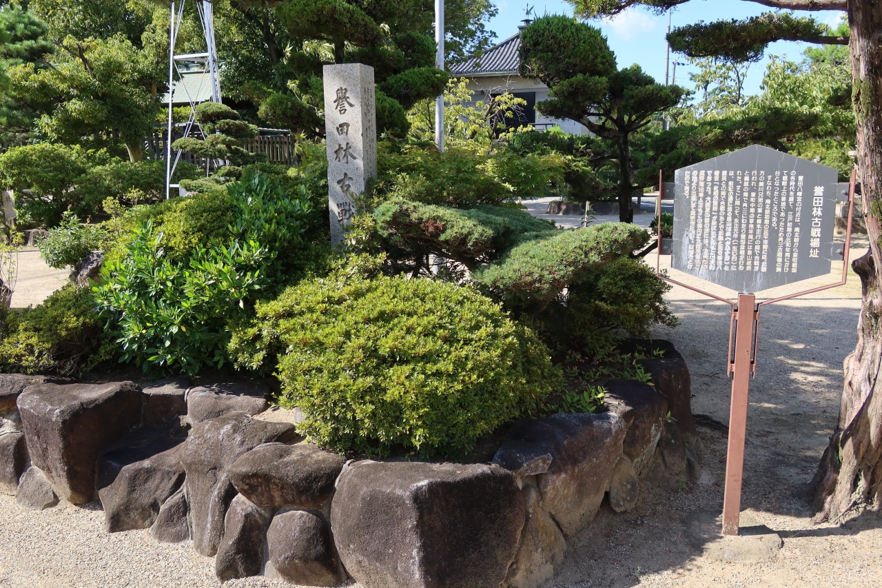 誉田八幡宮の境内に誉田林古戦場跡の石碑があります。この辺りは戦略上の重要な場所で南北朝時代から江戸時代に掛けて幾度と戦場になった場所だそうです。細川兄弟と楠木正行の戦、畠山政長と義就の間の誉田合戦、大坂夏の陣では道明寺の戦で薄田兼相がここに陣を構えたそうです。石碑だけなので見応えはありませんが、歴史深い場所です。
