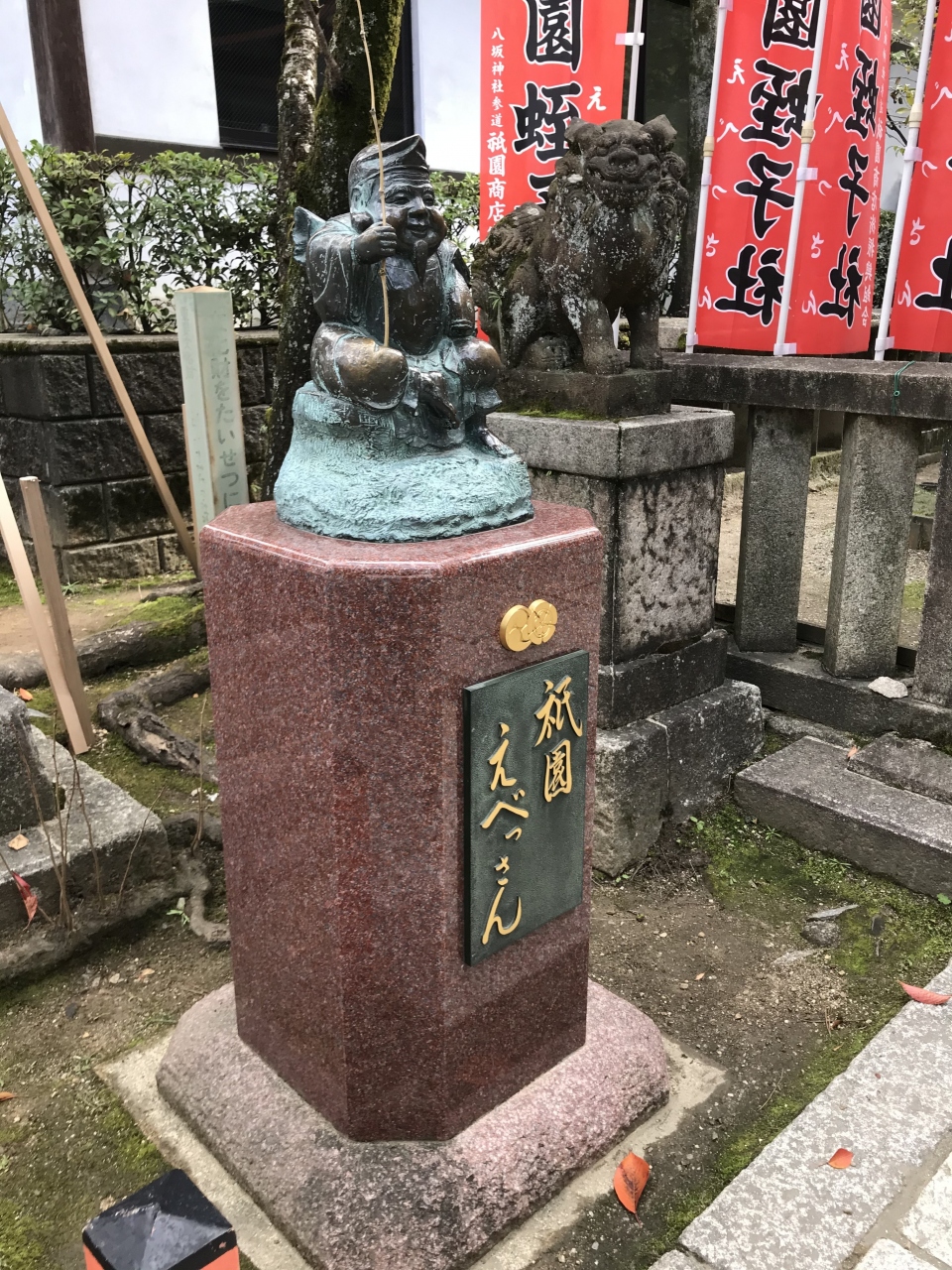 八坂神社に「えべっさん」が祀られるようになったのは平安時代と、全国のえべっさんの中でも歴史はかなり古いものです。北向きに社を構えているのが珍しいことから「北向蛭子社」と呼ばれているらしいです。現在の蛭子社は1646年に建造されたようです。