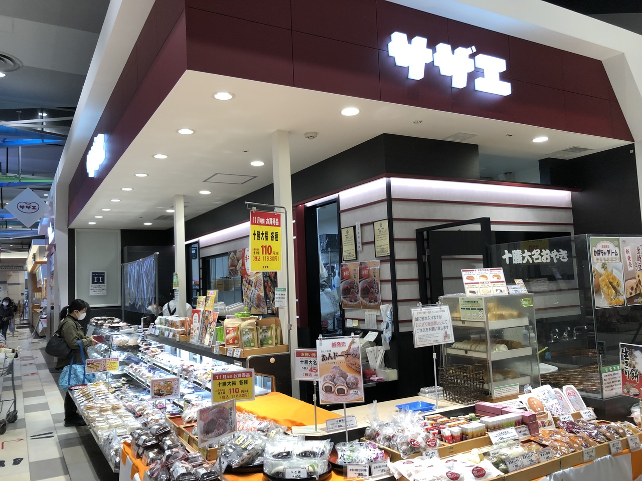 道内64店舗を展開する「サザエ」のイオン札幌元町店の1階、食品売場の手前の惣菜店が並ぶ一角にあります。道民ならお馴染みのお店ですが、札幌市東区にはこちらのお店と西友元町北24条店の中のお店しかありません。鯛焼き以外の商品は取り揃えているようで、おやき(今川焼き)の実演コーナーを含めところ狭しに商品が並んでおり、いつも迷ってしまいます。おにぎりを買うつもりがついついおはぎも買ってしまうことも。おはぎは、こし餡、つぶ餡の両方揃えているのが嬉しい。おにぎりも種類豊富ですが、やはり人気ナンバーワンdeボリュームのあるエビ天のおにぎりは是非食べたい。