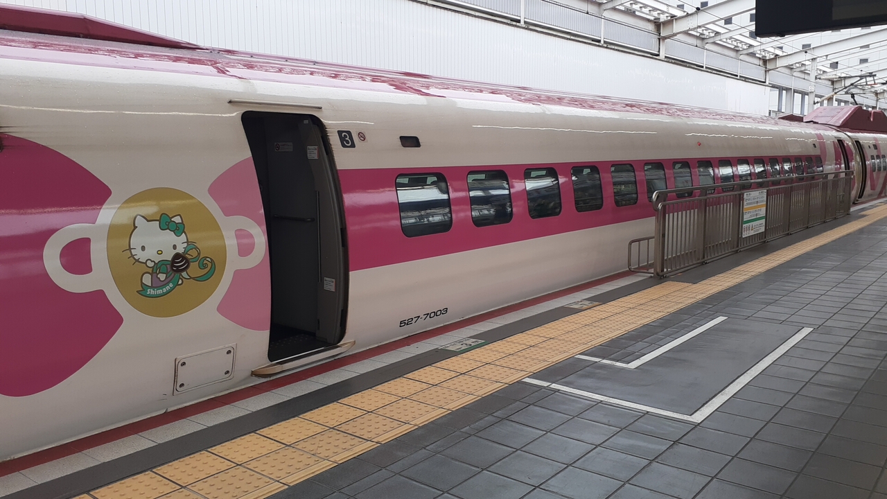 JR西日本製の500系という8両編成の車両をベースにキティちゃんをモチーフにした山陽新幹線の車両です。