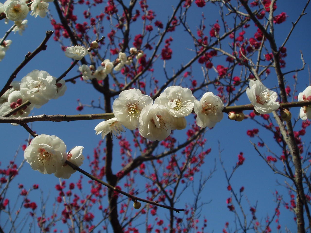 広大な広さを持つ成田山公園の平和大塔の近くに梅林があります。2月の晴れた一日、紅白の梅の花が心地よい香りを放ちながら咲いていました。季節はまだ寒さの残る時期でしたが、春の訪れが近いことを感じながら園内の散策を楽しめました。