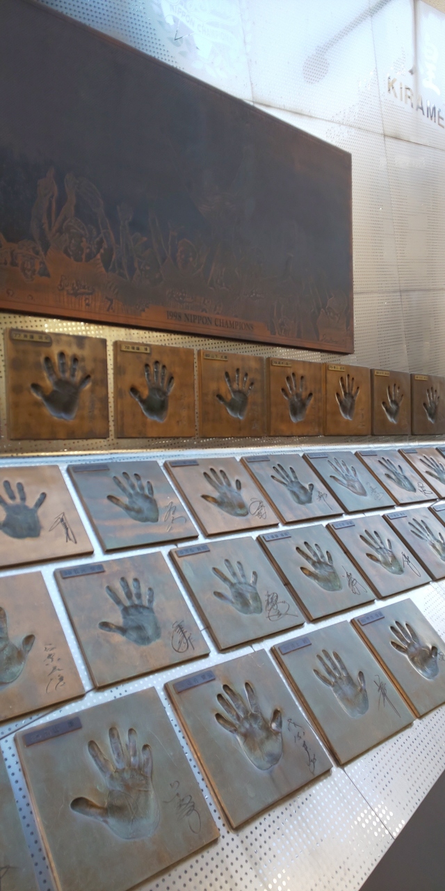 手形がたくさんある横浜ベイスターズのモニュメントです。