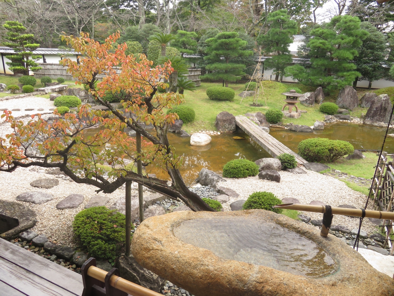 展示室では湖東焼の食器の展示、こちらは撮影禁止ですが、奥の復元された表御殿奥向(おくむき)は撮影可でした、ここから見られるお庭が見事で、もう少し時間をとればじっくり見られたかな、と思いました、広いので中にはお茶室もあります。
