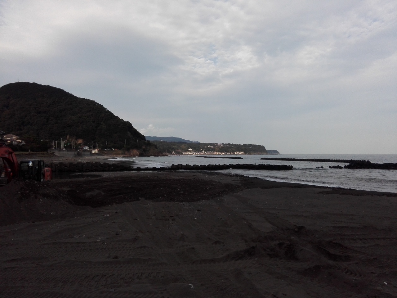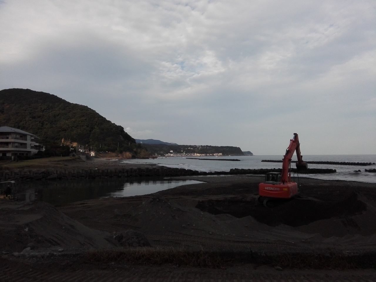 河津駅から南下すると、この河津浜海水浴場に出ます。海水浴場と言っても、泳いでいる人を見たことがありません。伊豆には、たくさんのきれいで砂浜の海水浴場が多くあるので、敢えてここで過ごすほどでもありません。荒波が打ち寄せ、河津川からの合流地点でもあります。