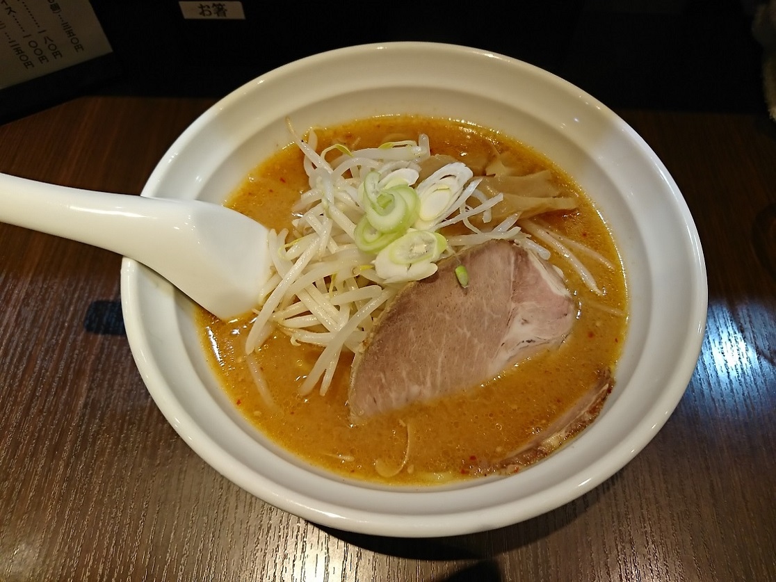 中央区日本橋人形町3丁目にあるラーメン屋さんです。ランチで味噌ラーメンをいただきました。具はチャーシュー、メンマ、モヤシ、ネギで、濃厚な味噌スープと中華縮れ麵の一品です。味噌の香りと旨味があり、美味しいスープでしたが、少々ぬるめだった点が残念でした。やはりラーメンのスープはフーフーしながらいただきたいです。