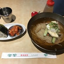 冷麺の麺は手打ちのようで太麺。注文から少し時間がかかるが美味い。一見盛岡冷麺の麺に似ていなくも無いが、麺のコシが韓国で食べた麺に近い感じ。スープもあっさり系でキムチにあう。