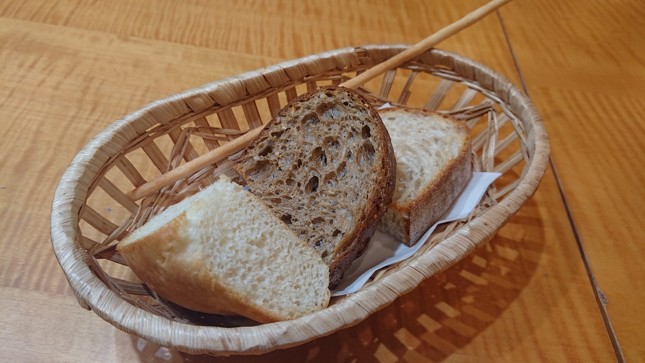 しばらくすると、スタッフの方が大きなカゴに入ったパンを持ってきてくれ、好きなのを選んでくださいと。