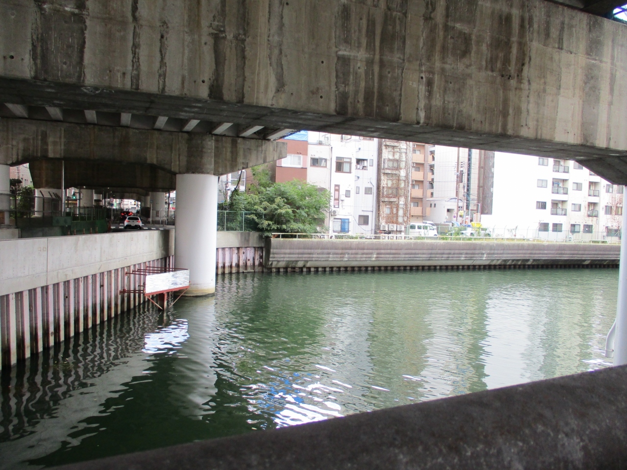 東横堀川の一番南端にある橋です。ここから堀は曲がり道頓堀川になります。上に高速が走り、あまり明るいとは言えない橋です。人通りも少ないです。川の分かれ目のところにある橋として見ると、興味のある方にはちょっとおもしろいところかなと思います。
