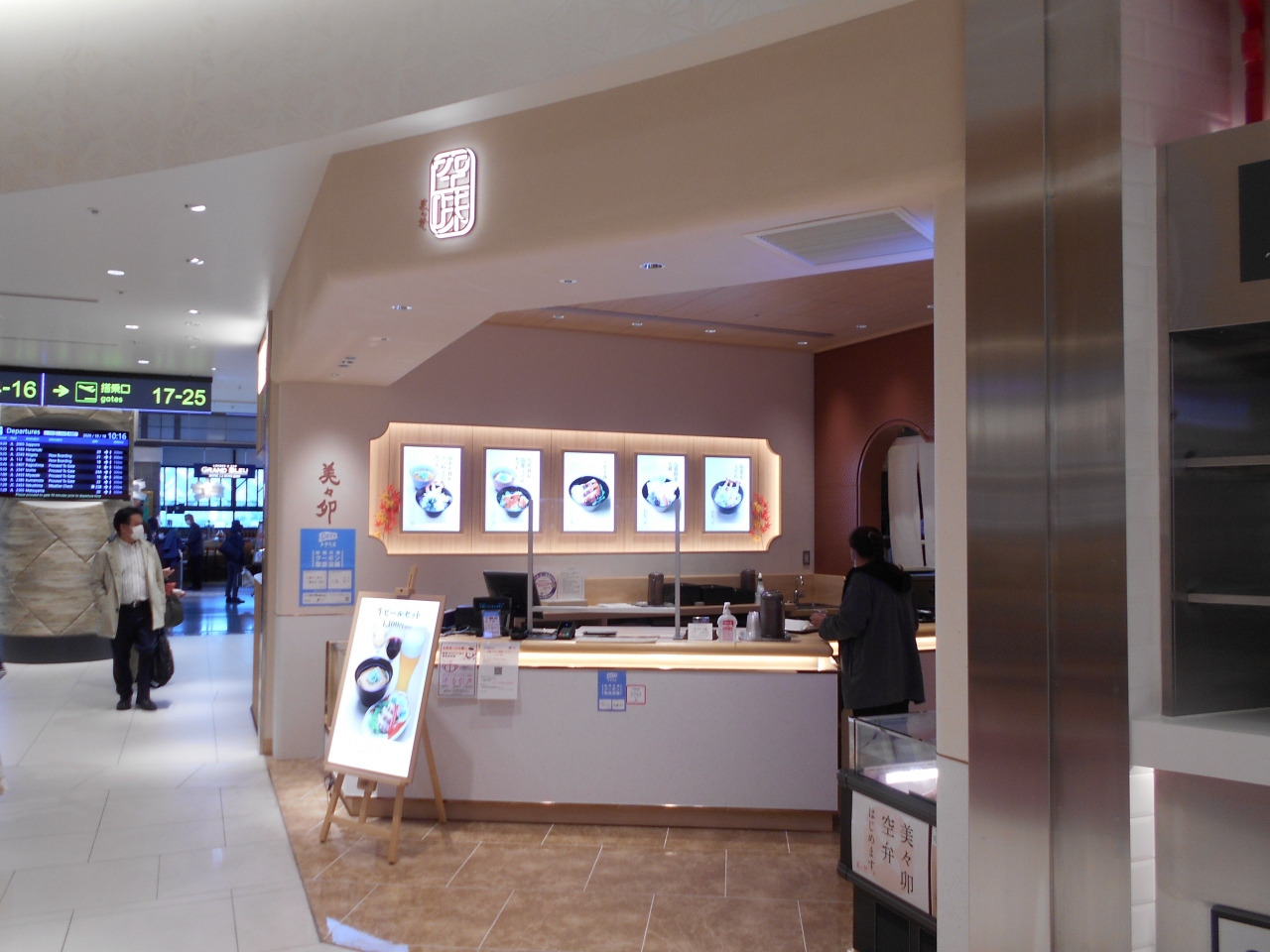 大阪伊丹空港北ターミナルビル2Fの保安検査所を通った区域の新しいショッピングモール伊丹マルシェ内にある大阪伝統の味を提供してくれるうどんすきの美々卯。空港内に出来たとは驚きです。出発前や到着後にビジネスで使えます、家族でも時間があれば難波のうどんすきを楽しめます。朝時間の少ない人用のお弁当もあり便利です。