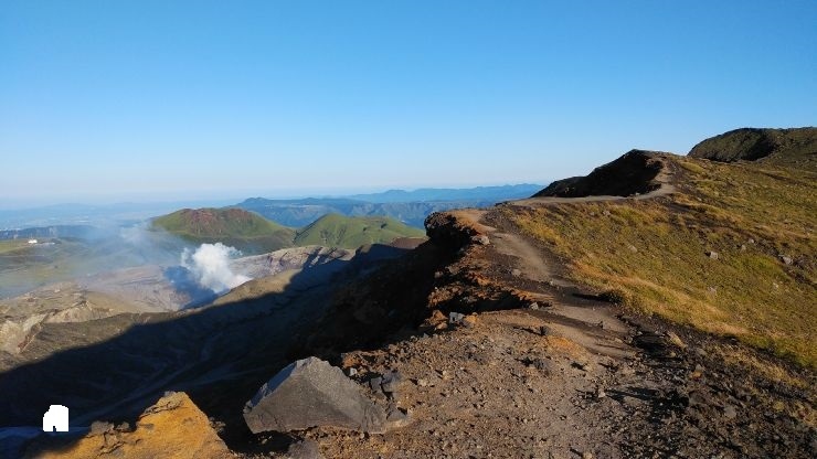 登山口は複数あるが阿蘇山ロープウェイ(廃止)側からとした。火口見学も解禁されたが、ここ数日は有毒ガス発生により規制(中止)されていた。登山道も火口までの道と共有するが、通行はできるようだった。ここから中岳を通り、高岳を往復。