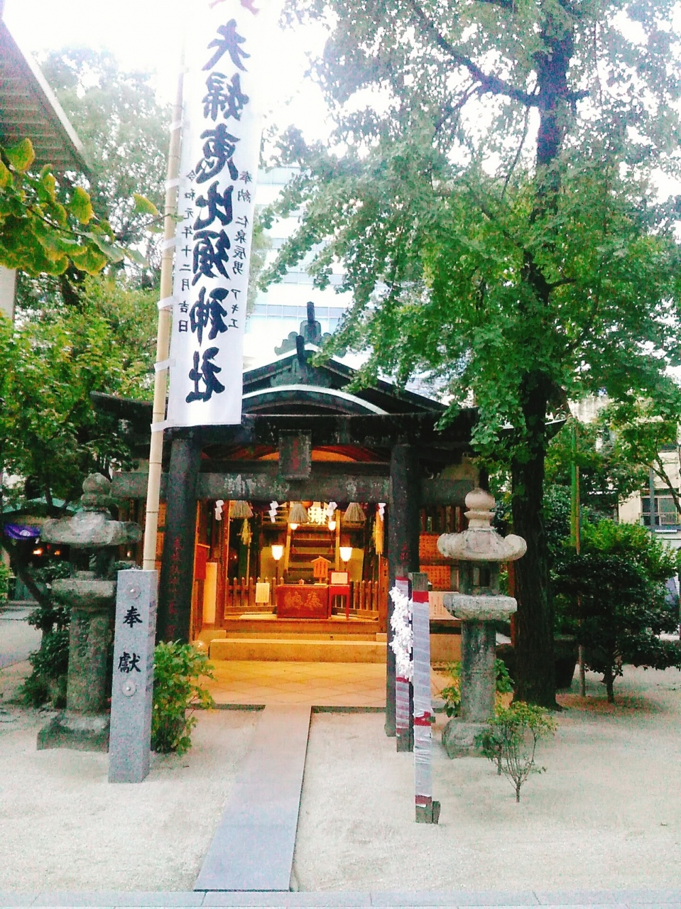夫婦恵比須神社は博多祇園山笠が奉納されている櫛田神社の境内、拝殿の左後ろ側にあります。拝殿は小さいですが趣のある佇まいです。また、拝殿の向かいには「夫婦銀杏」があり、夫婦円満・縁結びの霊樹として信仰されています。 この他、商売繁盛にもご利益が有るようです。