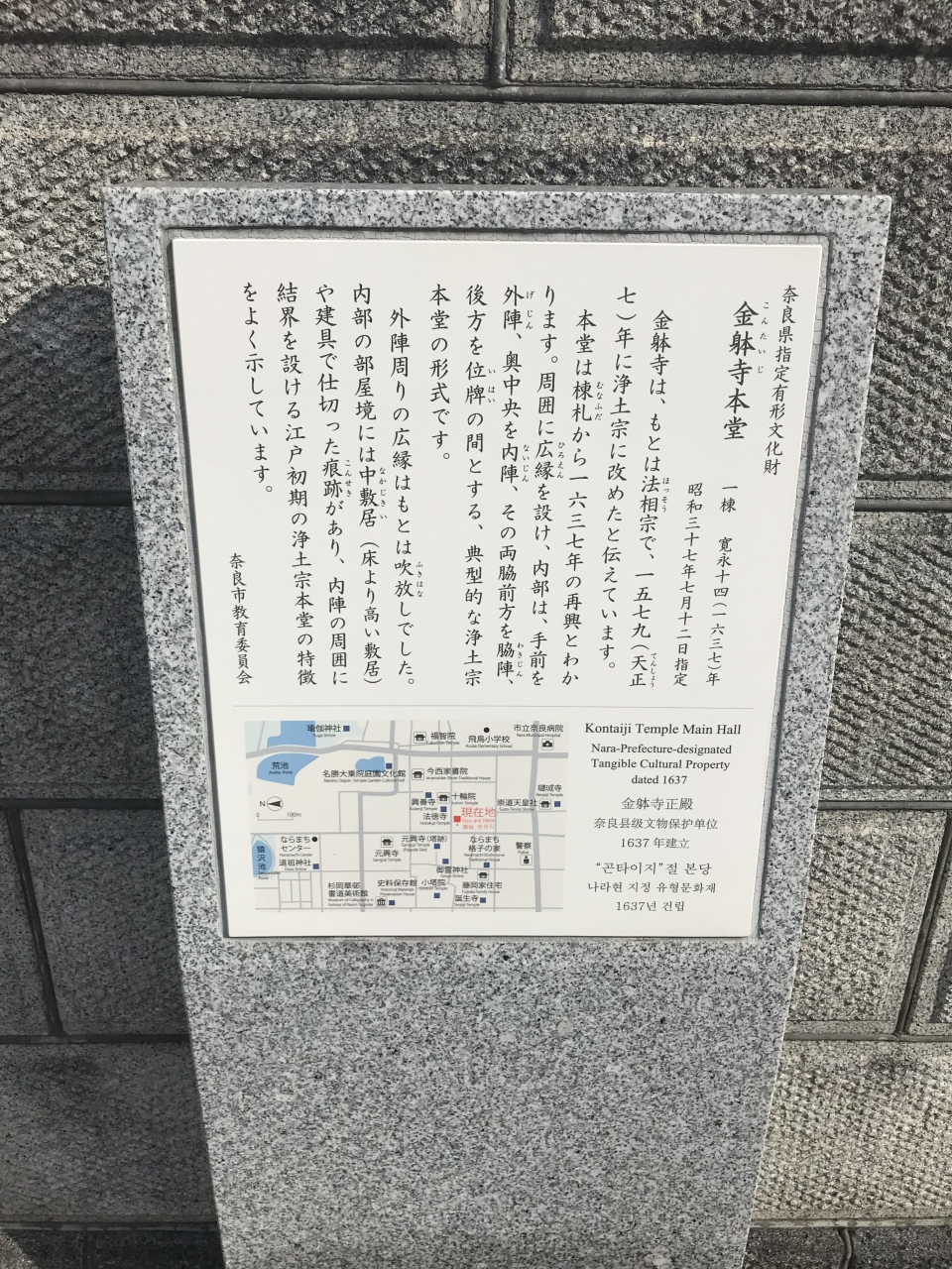 金躰寺の創建時期は未定とされていますが、元興寺の道昭法師が唐から帰ってきた際に開基した寺院であるとする説もあり、もしそうであれば奈良時代以前からあったお寺であることとなります。詳細は定かではありませんが、歴史深さを感じられる寺院です。