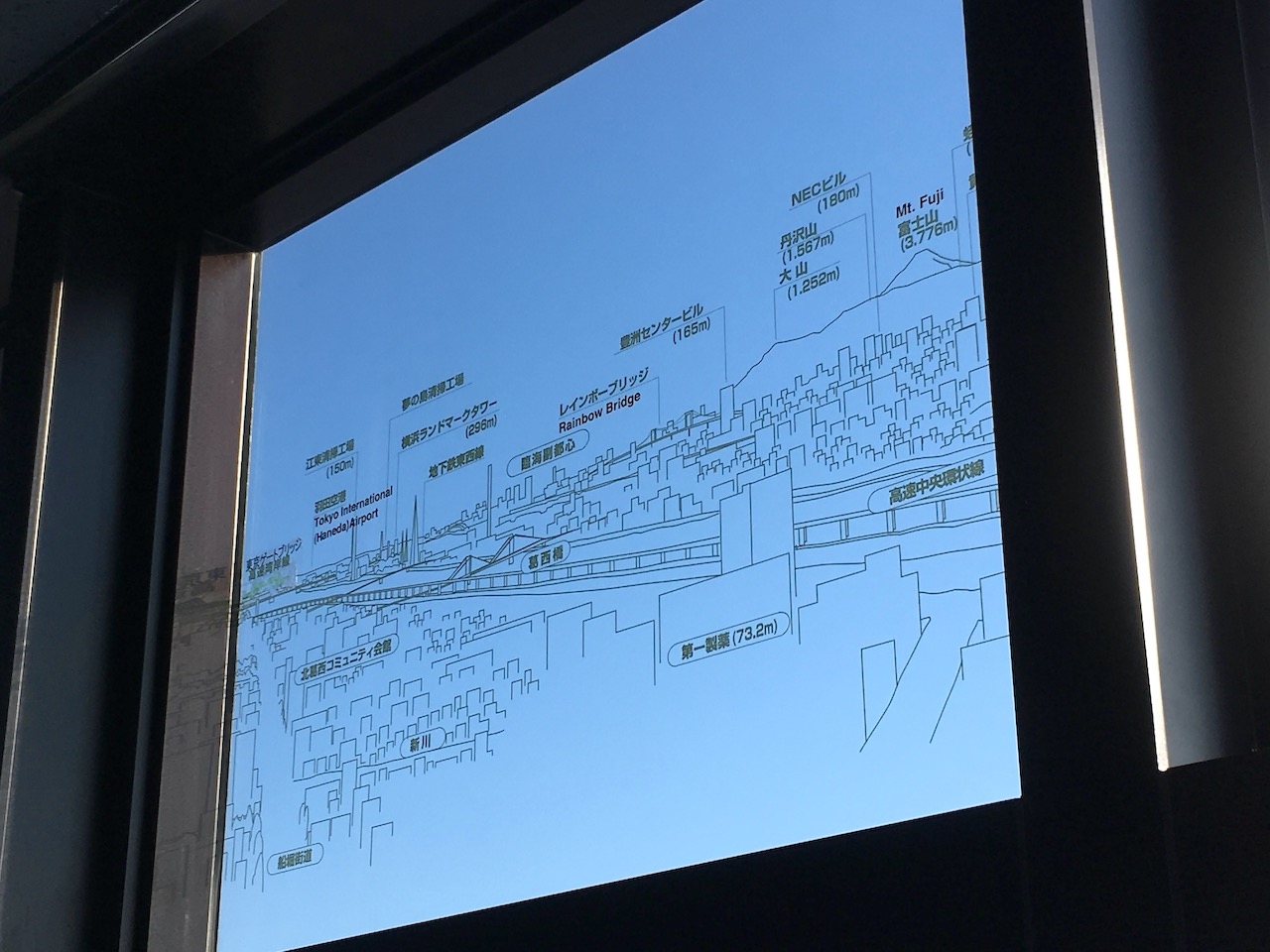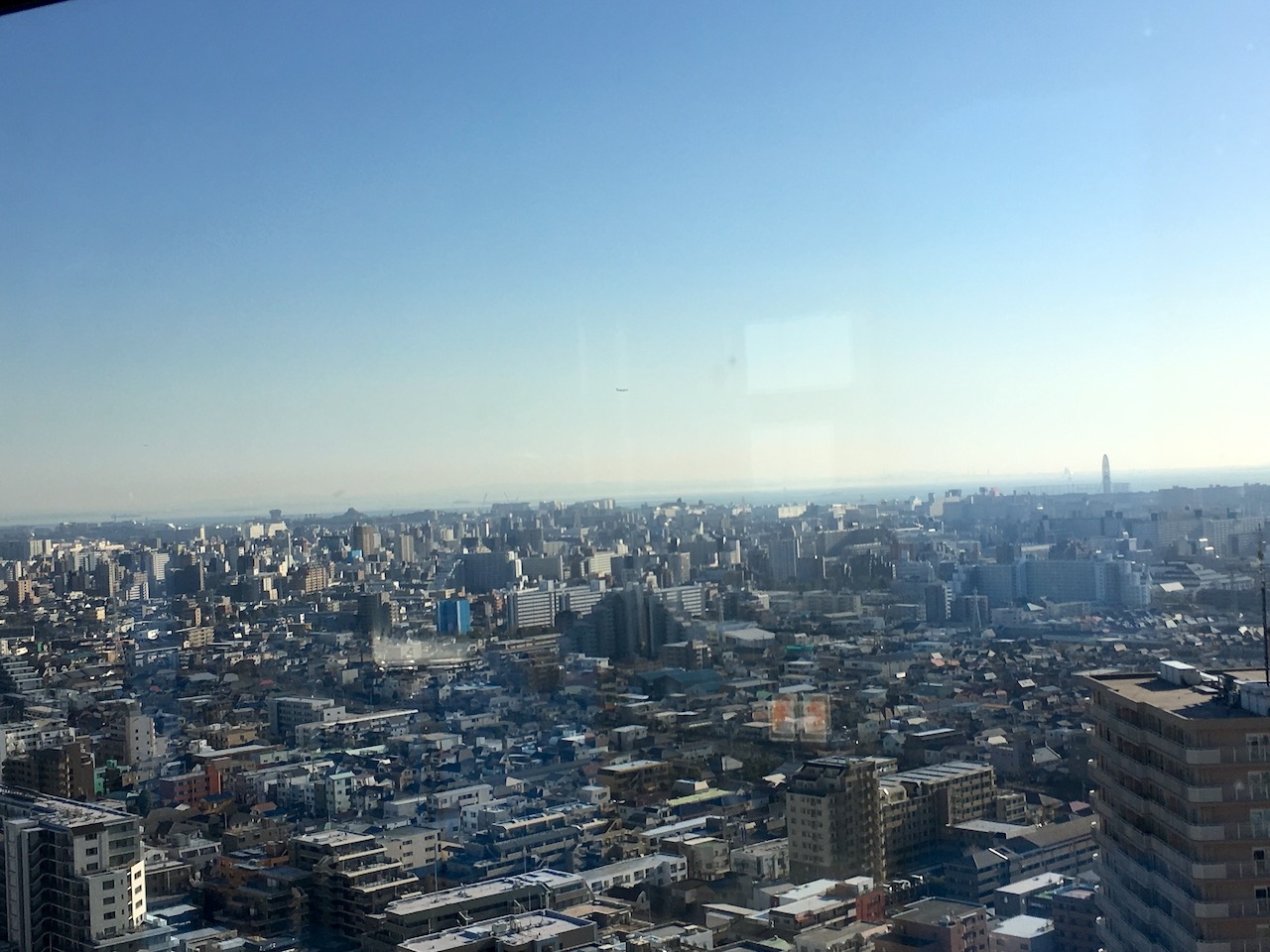 展望室からは遠くにディズニーランドらしき場所が見えます。