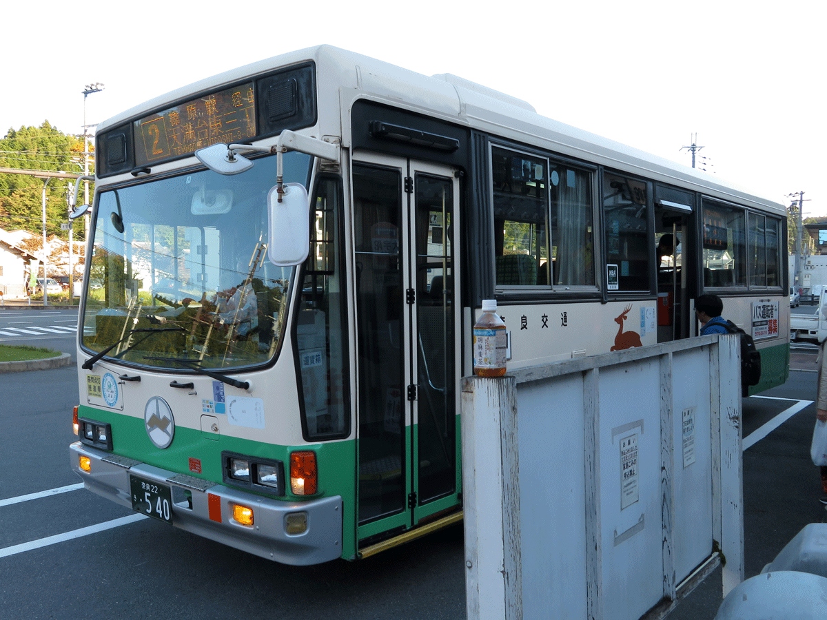 奈良県山間部にも多くの路線をもつ奈良交通。今回は榛原駅から大宇陀までのバスを利用しました。昼間でも1時間に1本程度は確保されており、大きく不便に感じることはありませんでした。大宇陀バス停は道の駅大宇陀内にあり、道の駅大宇陀は奈良交通が経営に関わっているようです。乗車した路線は、往復とも現地の方も比較的多く利用されていましたが、それでも空席がちらほらあるものの、生活には欠かせない路線だという印象でした。